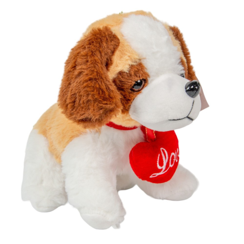 Plüss kutya piros szívvel 21 cm