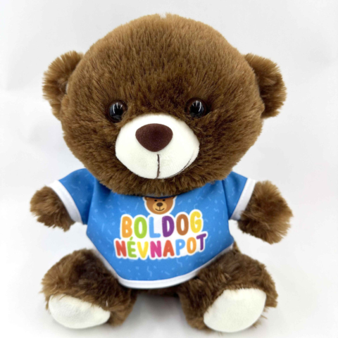 Plüss maci barna és fehér színben, levehető pólóján színes felirattal. 25 cm magas Nagyszerű választás, ha szívhez szóló, egyedi ajándékot szeretnél adni. Ideális ajándék névnapra. Utánvétellel nem vásárolható.
