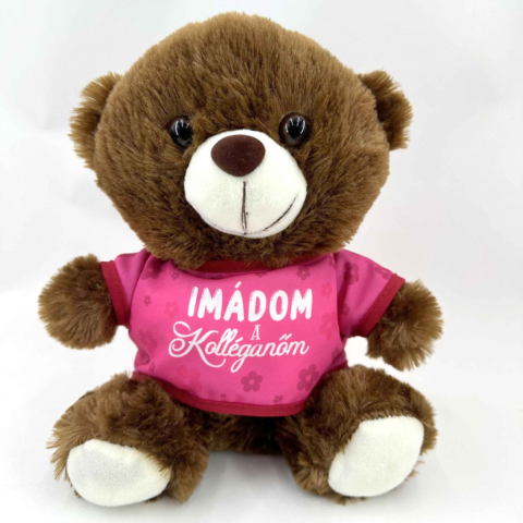 Plüss maci barna és fehér színben, levehető pólóján színes felirattal. 25 cm magas Nagyszerű választás, ha szívhez szóló, egyedi ajándékot szeretnél adni. Ideális ajándék kolléganőknek, minden alkalomra. Utánvétellel nem vásárolható.
