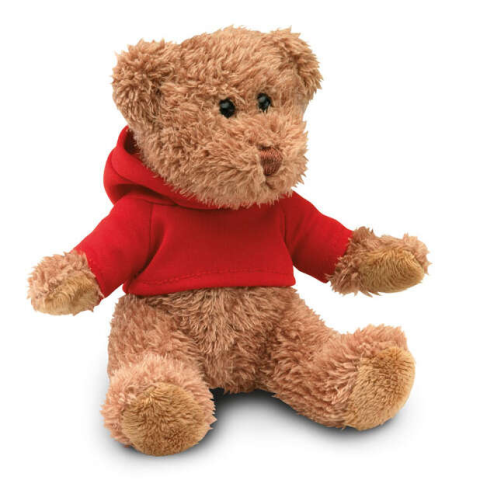 Plüss maci kapucnis pólóval piros plüssfigura 1 kép