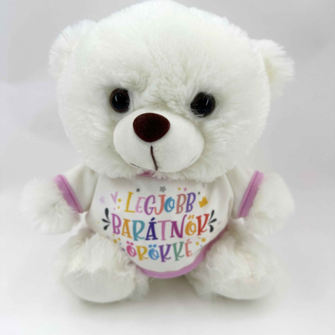 Plüss maci barna és fehér színben, levehető pólóján színes felirattal. 25 cm magas Nagyszerű választás, ha szívhez szóló, egyedi ajándékot szeretnél adni. Ideális ajándék minden alkalomra. Utánvétellel nem vásárolható.