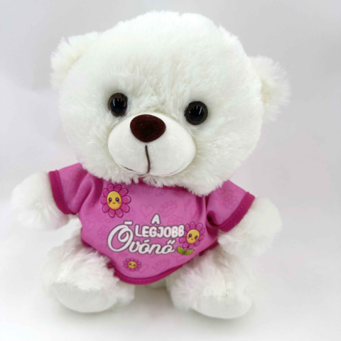 Plüss maci barna és fehér színben, levehető pólóján színes felirattal. 25 cm magas Nagyszerű választás, ha szívhez szóló, egyedi ajándékot szeretnél adni. Ideális ajándék minden alkalomra. Utánvétellel nem vásárolható.