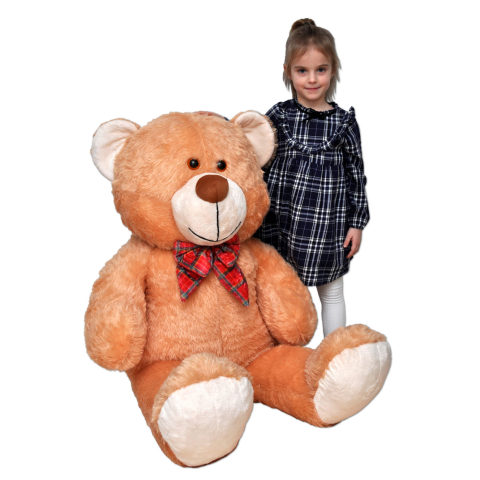 Nagy méretű plüss Teddy Bear Maci karamell színben. 140 cm magas, puha plüss mackó ideális ajándék, ami a nagyságával örök emléket hoz létre. Tökéletes választás minden korosztálynak, személyes és különleges társ a mindennapokra.