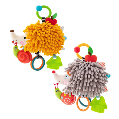 Az aranyos süni formájú játék minden bizonnyal megragadja a babád szívét: a kis felfedezők gyorsan megértik mit kell tenni, hogy a játék zenéljen és csörgjön. A szép élénk színek és a különféle függők játékos felfedezésre késztetik a babát. Ez a finom puh
