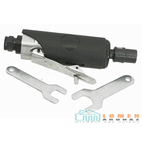 TOPEX pneumatikus egyenes csiszoló (ref. száma 74L210) ??-os csatlakozással. Maximális fordulatszáma 25 000 ford./perc. Használható különféle csiszolószerszámokkal és köszörûkövekkel. A CE tanúsítvány igazolja az európai biztonsági normáknak való megf