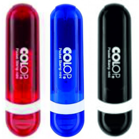 A legkisebb zsebbélyegző 3 standard színben. Termékinformáció: Termék színe: fekete, kék, piros Szöveg sorai: 3 Lenyomat mérete 38 x 10 mm Lenyomat színek:fekete, kék, zöld, piros, lila A legkisebb COLOP zsebbélyegző. A vékony és ele