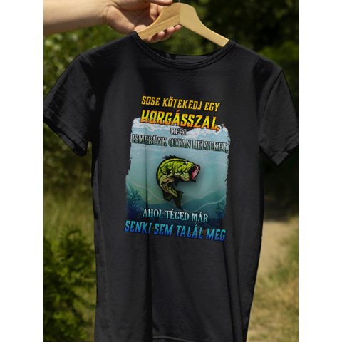 Poénos pecás póló, sose kötekedj. Ez a póló nem csak egy egyszerű viselet, ez egy figyelmeztetés, hogy sose kötekedj egy horgásszal, mert ismerünk olyan helyeket, ahol téged már senki nem talál meg. Ha ismersz egy horgászt, aki minden szabadidejét a vízpa