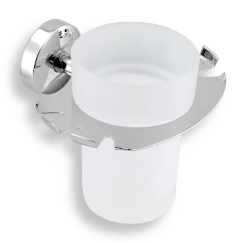 Pohár és fogkefe tartó króm színű. A Novaservis márkájú fürdőszobai kiegészítő szélessége 13,6 cm alapanyaga fém, üveg.