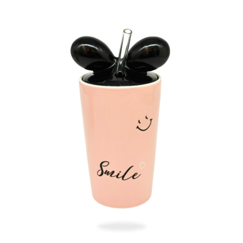 Pohár kerámia + tető + szívószál 350ml LU-13