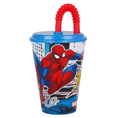 Spiderman, Pókember Szívószálas pohár.Zárható tetővel.Nem mikrózható. Mosogatógépben nem használható.-BPA Mentes-Származási ország: SpanyolországAnyaga: műanyag