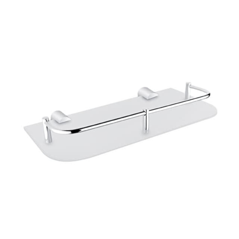 Polc matt üveggel, lekerekített sarkokkal, kerítéssel. Hossza 30 cm.