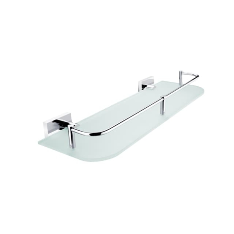Polc matt üvegkerettel. Hossza 40 cm. Fogantyúk sárgaréz, krómozott kivitelben.