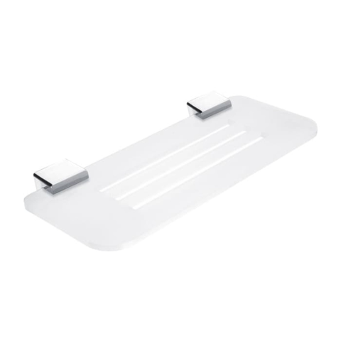 Polcok maratott lyukakkal. Anyaga matt felületű plexiüveg. Hossza 30 cm. Fogantyúk sárgaréz / króm.