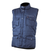 Meleg sokzsebes mellény Anyaga: 35% pamut, 65% poliészter, bélése 200 g/m2 poliészter Kényelmes poliamid belső, mely a karöltőnél gumírozva van Álló gallér két patenttal Derekat védő hosszított hátrész Egy belső és hét külső zseb Cipzáros plusz patentos