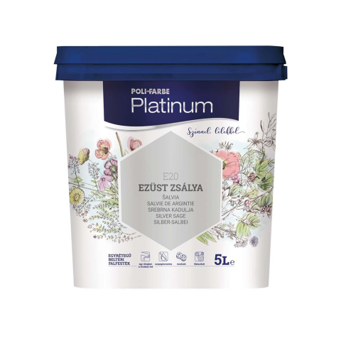 Poli-Farbe Platinum beltéri diszperziós falfesték Ezüst zsálya 5 l. Extra nagy fedőképességű, akár egy rétegben is. Gélesített, csepegésmentes. Bevonata matt, tartós, könnyen tisztítható.Kiszerelés: 5 l.