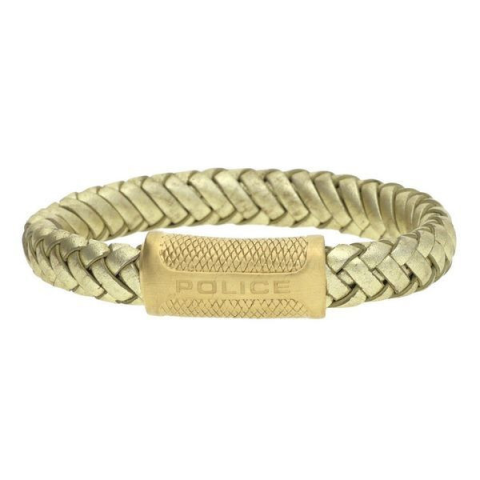 1 kép Police eredeti férfi bőr karkötő, arany színben (22 CM), dobozzal
