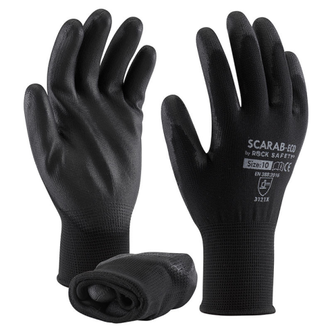 1 kép Poliészter szerelőkesztyű PU tenyérmártással, gazdaságos változat (SCARAB-ECO-V)