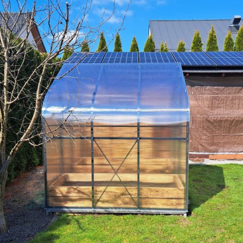A Polikarbonát üvegház 250x205 antracit acél teljes egészében tartós, nagy teherbírású acélprofilokból készülnek.Az elemek innovatív kapcsolódási rendszere rendkívül stabil, erős szerkezetet eredményez, amely ellenáll az időjárás viszontagságainak – még a