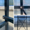 A Polikarbonát üvegház 300x600 antracit acél teljes egészében tartós, nagy teherbírású acélprofilokból készülnek.Az elemek innovatív kapcsolódási rendszere rendkívül stabil, erős szerkezetet eredményez, amely ellenáll az időjárás viszontagságainak – még a