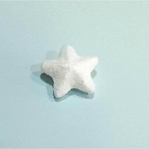 Polisztirol csillag, csillámos, fehér. Mérete: 20 mm