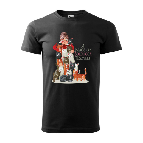Póló A macskák boldoggá tesznek mintával - Fekete S méretben ajándéktárgy 1 kép