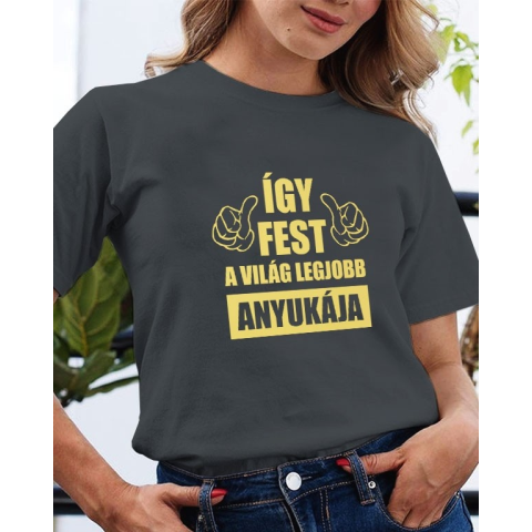 Póló anyukáknak, ajándék anyának. Ajándék ötlet nőknek, feliratos egyenes szabású póló anyáknak. Így fest a világ legjobb anyukája felirattal. A póló többféle színben rendelhető, pamut póló. Tökéletes ajándék édesanyáknak, akár anyák napjára is. Kivá