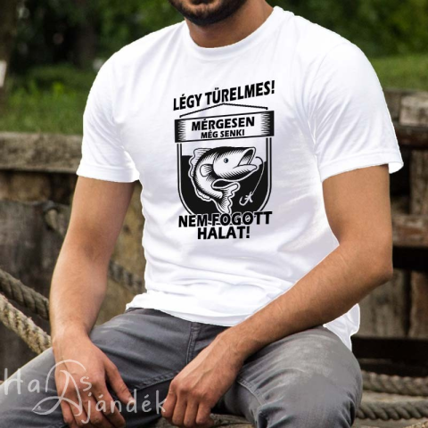 Póló horgászoknak, mérgesen nem lehet halat fogni. Légy türelmes, mérgesen még senki nem fogott halat feliratos póló. Meglepetés születésnapra,névnapra, karácsonyra a legnyugodtabb horgásznak vagy éppen a legtürelmetlenebb pecásnak jó tanácsként. Többféle