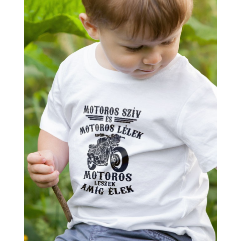 Póló motorosoknak, gyerek motoros póló a motorok és a sebesség megszállottjainak. Motoros szív és motoros lélek, motoros leszek, amíg élek feliratos gyerek póló. Ütős ajándék barátodnak, családtagodnak is. A póló és a minta színét te választhatod ki. 100%
