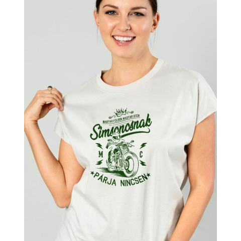 Póló motorosoknak, Simson női póló. Karcsúsított póló a Simson motor megszállottjainak. Ütős ajándék lehet barátnőnek, nőknek. Magyar földön magyar Isten, a Simsonosnak párja nincsen felirattal. A póló és a minta színét te választhatod ki. 100% pamut póló