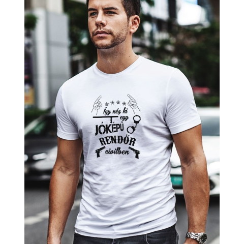 Ajándék rendőröknek, jóképű rendőr. Így néz ki egy jóképű rendőr civilben férfi póló felirattal rendőr barátodnak, férjednek. Lepd meg születésnapján, névnapján egy ilyen pólóval, hogy tudja számodra ő a leghelyesebb rendőr a világon. 100% pamut póló, tar