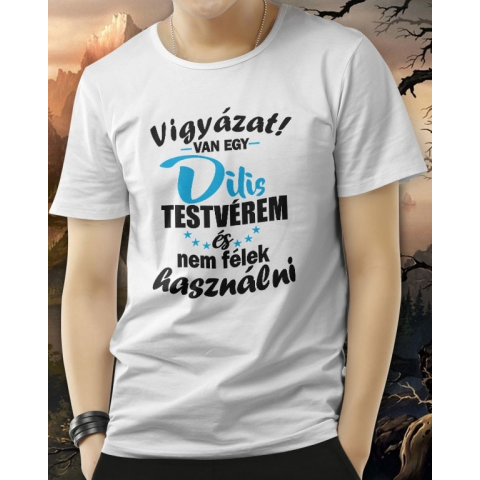 Póló testvérnek, ajándék dilis testvérnek. Lepd meg bátyádat vagy öcsédet egy humoros pólóval. Vigyázat! Van egy dilis testvérem és nem félek használni! felirattal. Ideális ajándék lehet szülinapra, névnapra is. Kiváló minőségű férfi és női pólók, amel