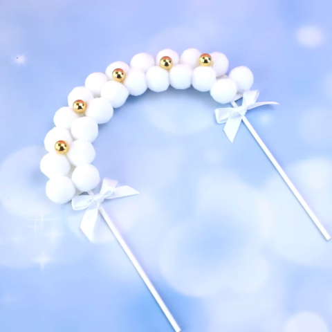 Pompom Boltív Tortára – Fehér Színben Dobd fel a tortádat ezzel az elegáns fehér pompom boltívvel, amely tökéletes dekoráció bármilyen ünnepi süteményhez! A letisztult fehér pompomokból készült boltív minden tortát különlegessé tesz, legyen szó esküvőről