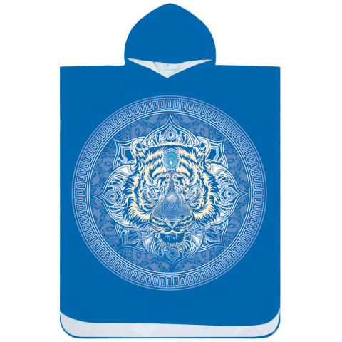 A kék Strandtigris poncsó kiváló társ a vízparti pihenéshez. Az 80 x 145 cm-es méretének köszönhetően kényelmes ruhaként, törölközőként és nap- vagy szélvédelemként is használható. Az oldalsó patentok, a laza kapucnis kialakítás és a vállra eső ujjak maximális kényelmet biztosítanak.