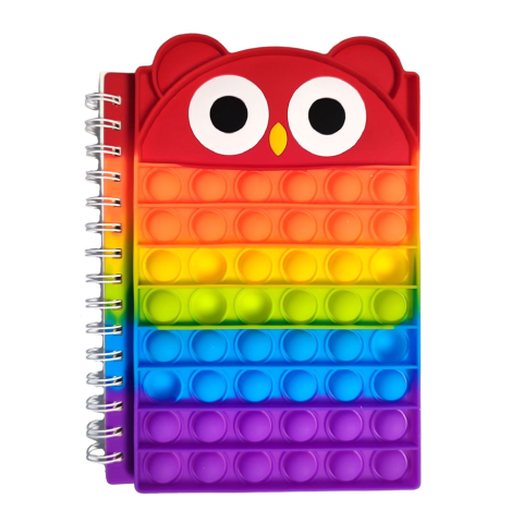 Ez a Baglyos, Pop It-al kirakott A5-ös napló praktikus és szórakoztató eszköz az iskolába vagy az irdába! Jó minőségű, strapabíró jegyzetfüzet egy kis relaxációs funkcióval. Pop it bagoly A5-ös napló, spirálos jegyzetfüzet Szeretnél egy játékot, ami mi