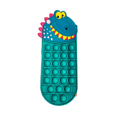Praktikus és szerethető Pop It Dínós mintás tolltartó, ami játékos stresszoldó és írószertároló egyben. Tartós és könnyen tisztítható szilikonból készült, cipzárral záródik. Mérete 20 cm. Lepd meg gyermekedet az iskolakezdésére vagy otthonra egy igazán