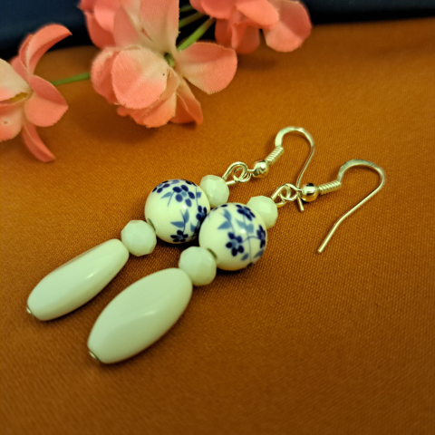 1 kép Porcelán virág fülbevaló 4 cm-es /997/