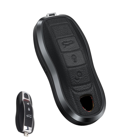 2 kép Porsche 3 gombos smart kulcs alumínium+bőr tok