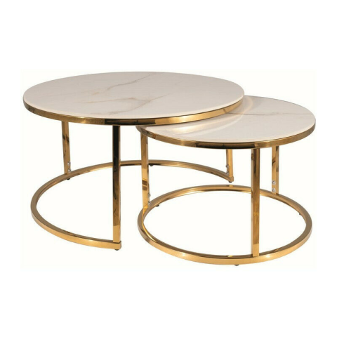 Portafino Luxus Kerámia Dohányzóasztal Szett Fehér Márvány Arany Vázzal bútor termékleírás