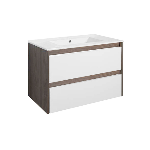 Leziter Porto 80 alsó szekrény mosdóval – rauna szil–fehér Fürdőszobabútor 80 cm szélességgel – modern megoldás közepes és nagyobb fürdőszobákba Korlátozott a helyed, de nem akarsz kompromisszumot kötni a tárolásban vagy a