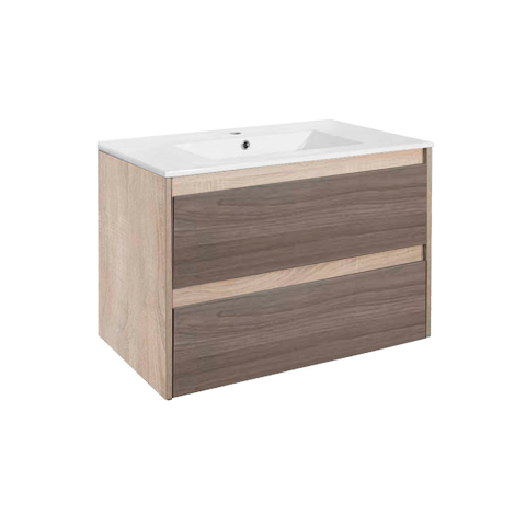 Leziter Porto 80 alsó szekrény mosdóval – fehér–rauna szil Fürdőszobabútor 80 cm szélességgel – modern megoldás közepes és nagyobb fürdőszobákba Korlátozott a helyed, de nem akarsz kompromisszumot kötni a tárolásban vagy a