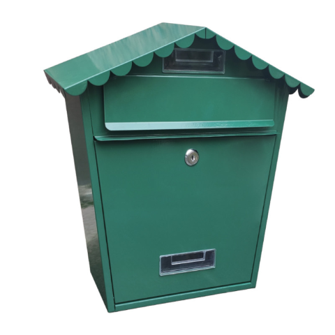 Postaláda 370x360x135mm acél porszórt, zöld HMB3638 Postaláda 370x360x135mm acél porszórt, zöld HMB3638 elölbedobós kivitel, elején betekintő ablakkal és névtáblával. Anyaga acél, porszórt felülettel. 2 db kulcs tartozék.