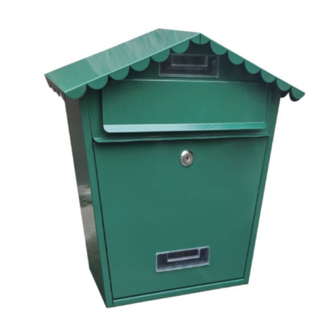Postaláda 370x360x135mm acél porszórt, zöld HMB3638 Postaláda 370x360x135mm acél porszórt, zöld HMB3638 elölbedobós kivitel, elején betekintő ablakkal és névtáblával. Anyaga acél, porszórt felülettel. 2 db kulcs tartozék.