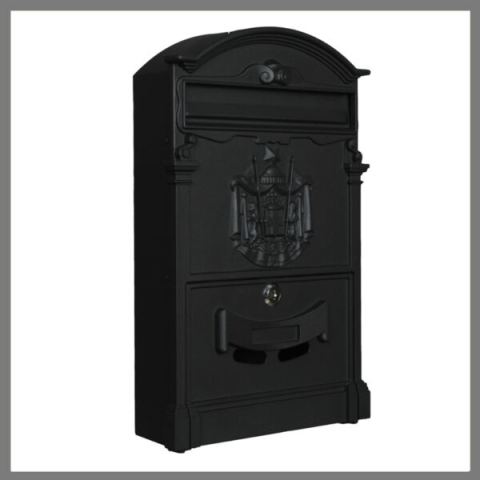 Postaláda 400x255x90mm, alumínium előlap, fekete HMB2540ABPorszórt festés, 2db kulccsal.