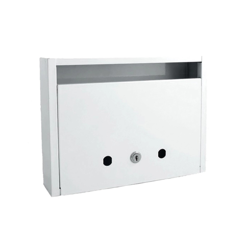 Fehér, lépcsőházi, záras, fekvő, felnyíló, 2 db kulcs, 1 bedobónyílás.