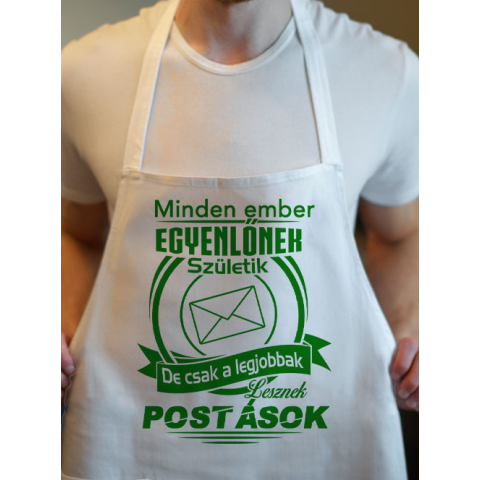 Postás kötény, legjobbak lesznek postások. Minden ember egyenlőnek születik, de csak a legjobbak lesznek postások, amennyiben egyet értesz ezzel az állítással és szeretnél adni valami ajándékot annak a bizonyos postásnak nincs is más dolgod, mint válaszd