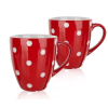 Pöttyös hasas bögre 400 ml, piros színű, magassága 10,5 cm, átmérője 9,5 cm, anyaga - kerámia. A bögrén található fehér pöttyös új gyártáskor minimálisan eltérhet méretben: +/- 1-2 mm