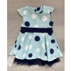 Rövidujjú, zöld egész kislány ruha fehér, sötétkék pöttyökkel és sötétkék övvel, amit hátul meg lehet kötni. Hátul cipzáros, ami segíti könnyebb fel- és levételt. Retro hangulatot idéző könnyed nyári ruha, melynek az alján tüll található. Mindig a pont