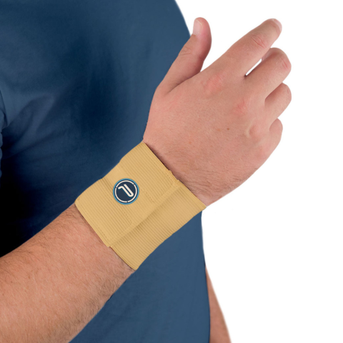 Termék jellemzői: - elasztikus anyag - bézs szín - tépőzáras rögzítés Méretezés a csukló kerület szerint: .