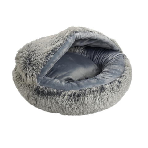Ultra puha, meleg, fedett kutya– és cicafekhely prémium sötétszürke bundával. Ideális félős, fázós vagy bújós kedvenceknek. A Kistappancs prémium bunda-bújó kuckó a legkényelmesebb menedék, amit kedvenced kaphat! A fedett kialakítás és a dupla puha any