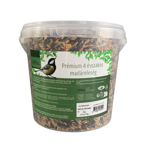 4 évszakos madáreleség mix 2 kg-os vödrös kiszerelésben. Az eleség parlagfű mentes és minden olyan fontos tápanyagot, vitamint tartalmaz, amelyre a madaraknak szüksége lehet. A madarak mindig hálásak a számukra kikészített élelemért,
